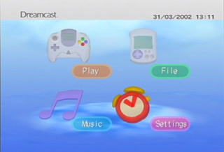 Lancez Reicast sans jeu pour vérifier que la console démarre et que vous obtenez bien le menu général de la Dreamcast (voir ci-contre).