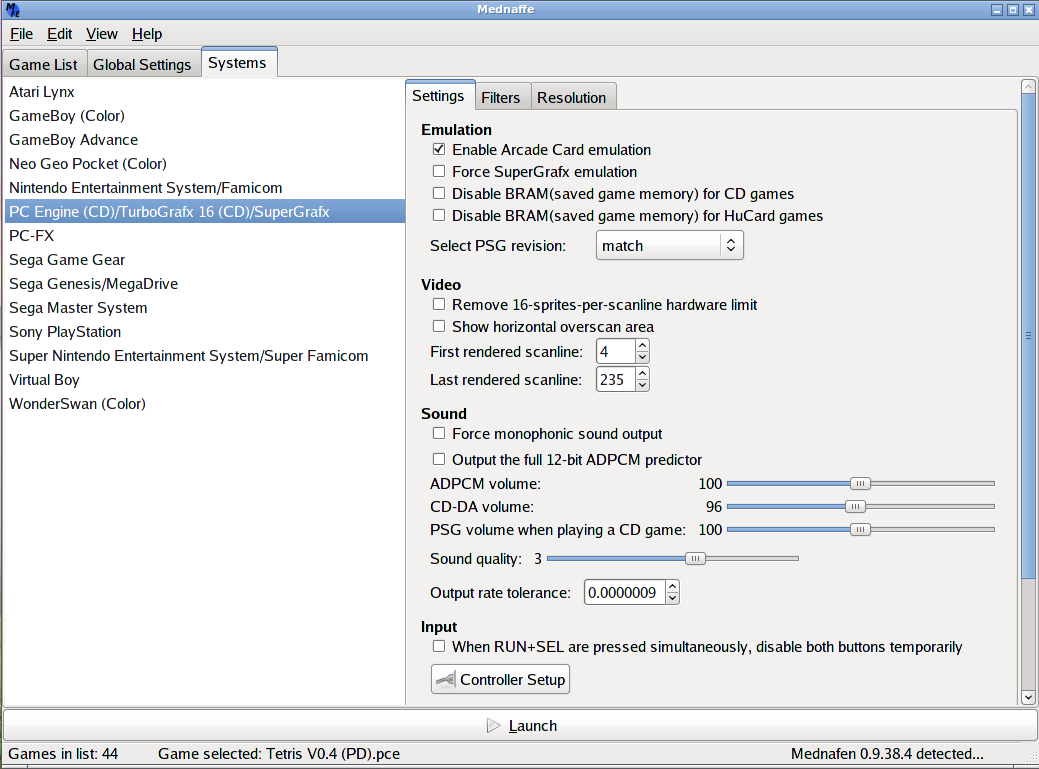 Mednafen est le meilleur émulateur des consoles Playstation, PC Engine et Virutal Boy. L'émulation des autres plate-formes se fait soit avec des émulateurs propres, soit en reprenant d'autres émulateurs.