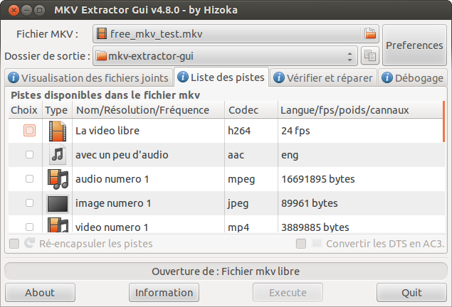 Il est possible de ré-encapsuler des fichiers mkv en repartant des pistes extraites en cochant la case correspondante.