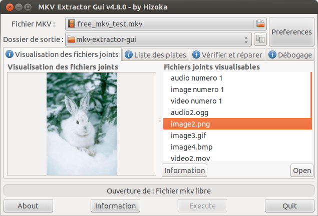 Il est possible d’exécuter les commandes mkclean et mkvalidator sur le fichier mkv ouvert.