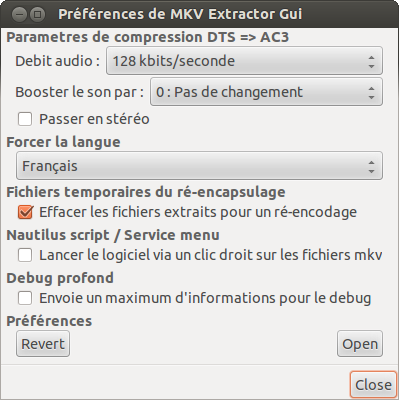 Les préférences, les dossiers du fichier mkv et du dossier de sortie sont conservés en mémoire afin de les charger directement à la prochaine utilisation du logiciel.