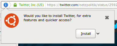 L'image « Would you like to install Twitter for extra features and quicker access? » est sous licence CC-BY-SA 3.0, a été publiée par devav2 sur le site askubuntu.com